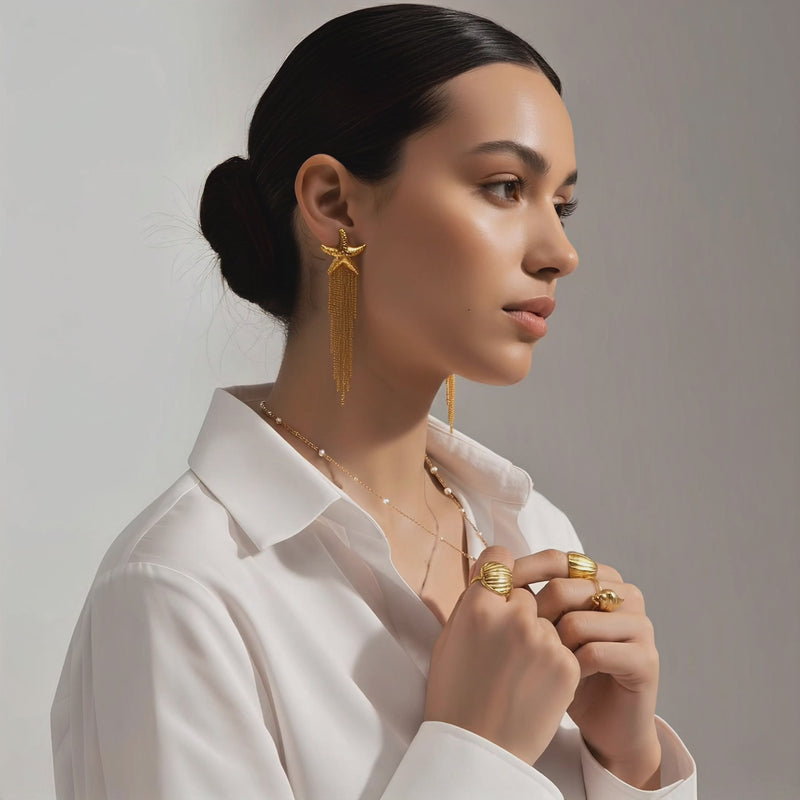 Pendientes de Estrella de Mar con Flecos Dorados